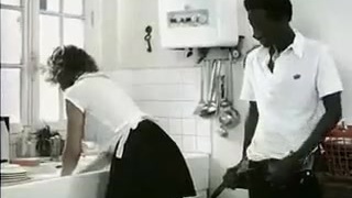 Crazy blond head bitch got her stinkin' pussy eaten by insatiable African stud on kitchen table