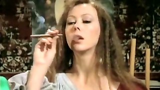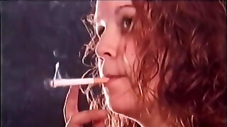 Vintage smoking fetish biotch with long red nails & lip liner takes a cumshot