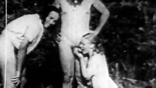 Interracial threesome in retro flick