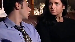 Pretty brunette nymph is sucking meaty schlong deepthroat in a dirty retro sex video