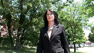 Brown-haired milf kommt beim seitensprung und lutscht den schwanz sauber