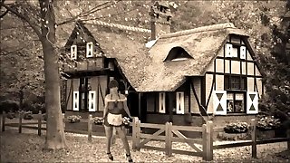 Vintage chick's outdoor kinky lingerie and onanism show - including seamed nylon stockings and vintage panties.
