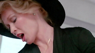 Blonde Milf strips off black lingerie finger-tickling in nylons