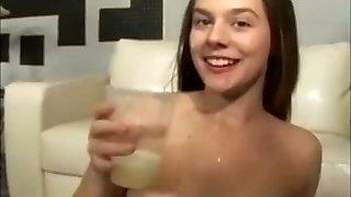1999 Retro Porn! Blonde Nubile Britney Drinks: 2 Cumshots Private sex tape