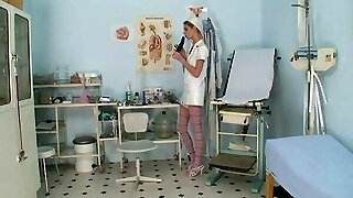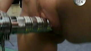 Curvy German lady pleasing her pussy with a rolling clamp